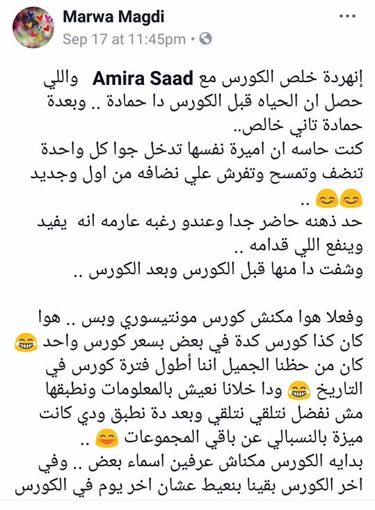 هذه بعض كلمات المتدربات اللاتي حضرن معي كورس المنتسوري العملي